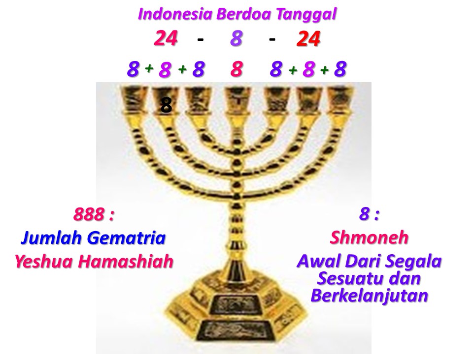 Hadirat Tuhan membawa Nama Yesus Juruselamat (888) berkumandang di seluruh Indonesia dan menjadi Awal (8) dari Segala Kebangkitan Rohani / Revival Indonesia sampai Tuntaskan Amanat Agung Terkini (TAAT) sampai 2033 Everyone / Setiap Orang Mendengar dan Menerima Yesus sebagai Tuhan dan Juruselamat sampai Rapture Yesus datang Kembali menjemput Jemaat-Nya – MempelaiNya yang siap sedia Masuk Surga Mulia (DS)